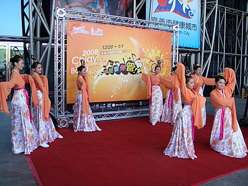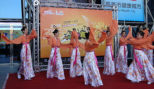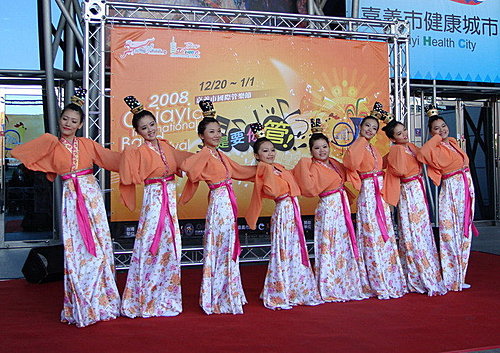 在悠揚的古樂聲中,南華大學雅樂團八位女同學以舞姿曼妙的「踏歌行」,拉開「2008嘉義市國際管樂節」起跑記者會序幕,中國傳統的踏歌舞蹈之後,