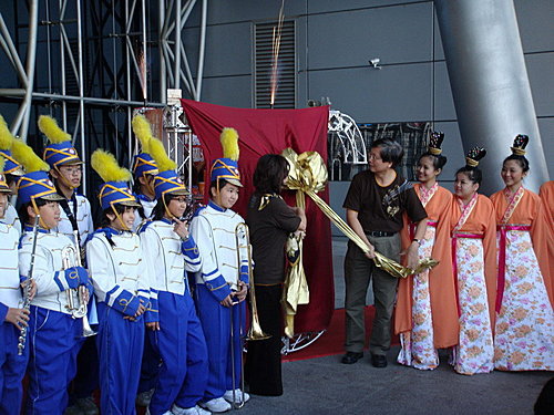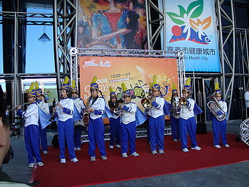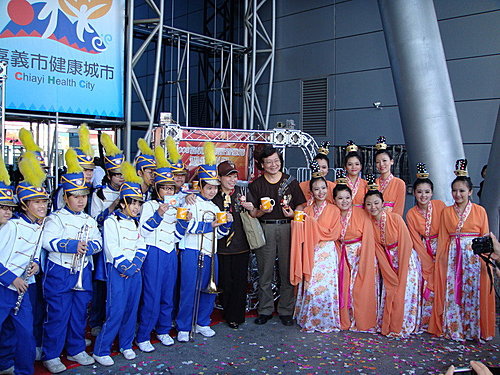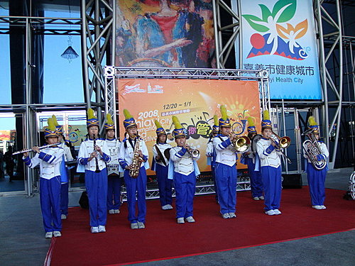 博愛國小管樂團隊以西式管樂登場,演奏「法櫃奇兵」及「壞人組曲」,中西合璧的搭配演出,頓時讓嘉義市政府廣場熱鬧起來。嘉義市長黃敏惠在記者會中宣佈嘉義市管樂節將於二十日,以創意踩街熱鬧登場!