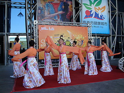 在悠揚的古樂聲中,南華大學雅樂團八位女同學以舞姿曼妙的「踏歌行」,拉開「2008嘉義市國際管樂節」起跑記者會序幕,中國傳統的踏歌舞蹈之後,